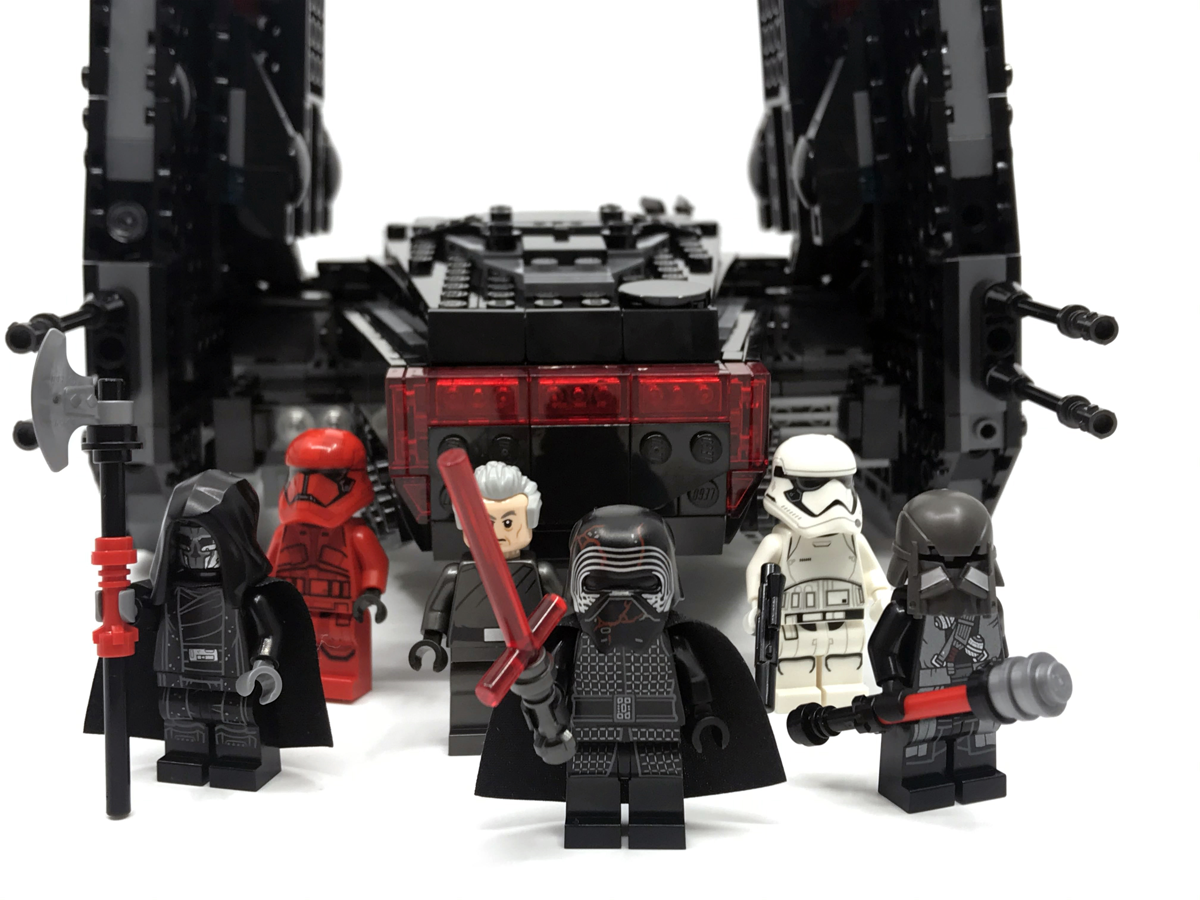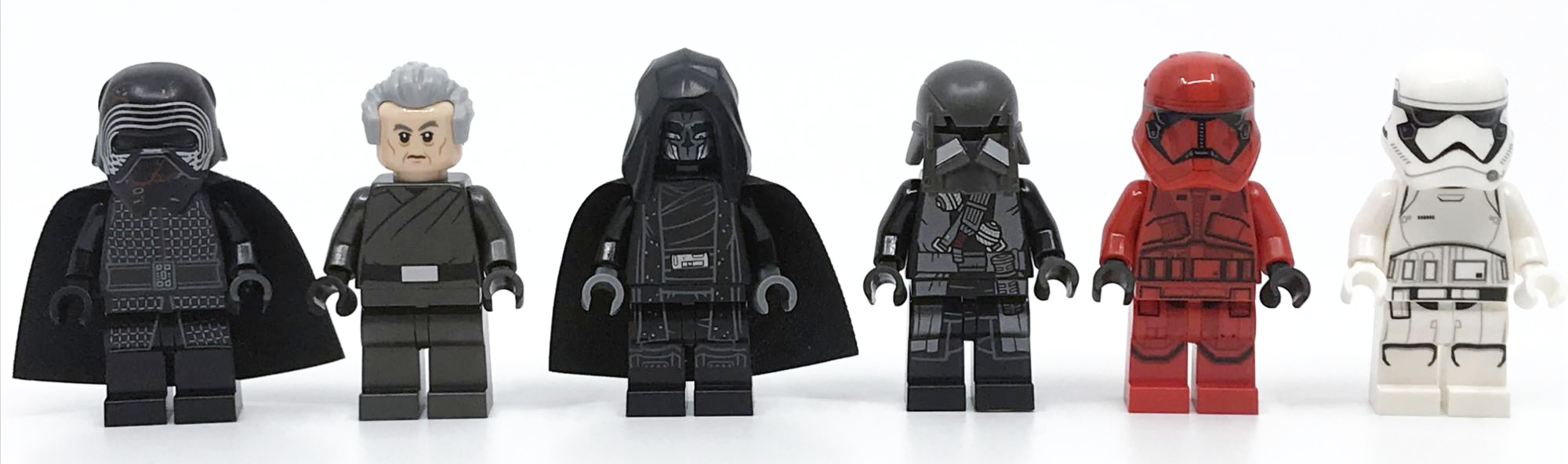 미니피겨는 좌측부터, 최고 지도자 카일로 렌, 프라이드 장군, 렌 기사단×2, 시스 트루퍼, 퍼스트 오더 스톰 트루퍼 순입니다.
