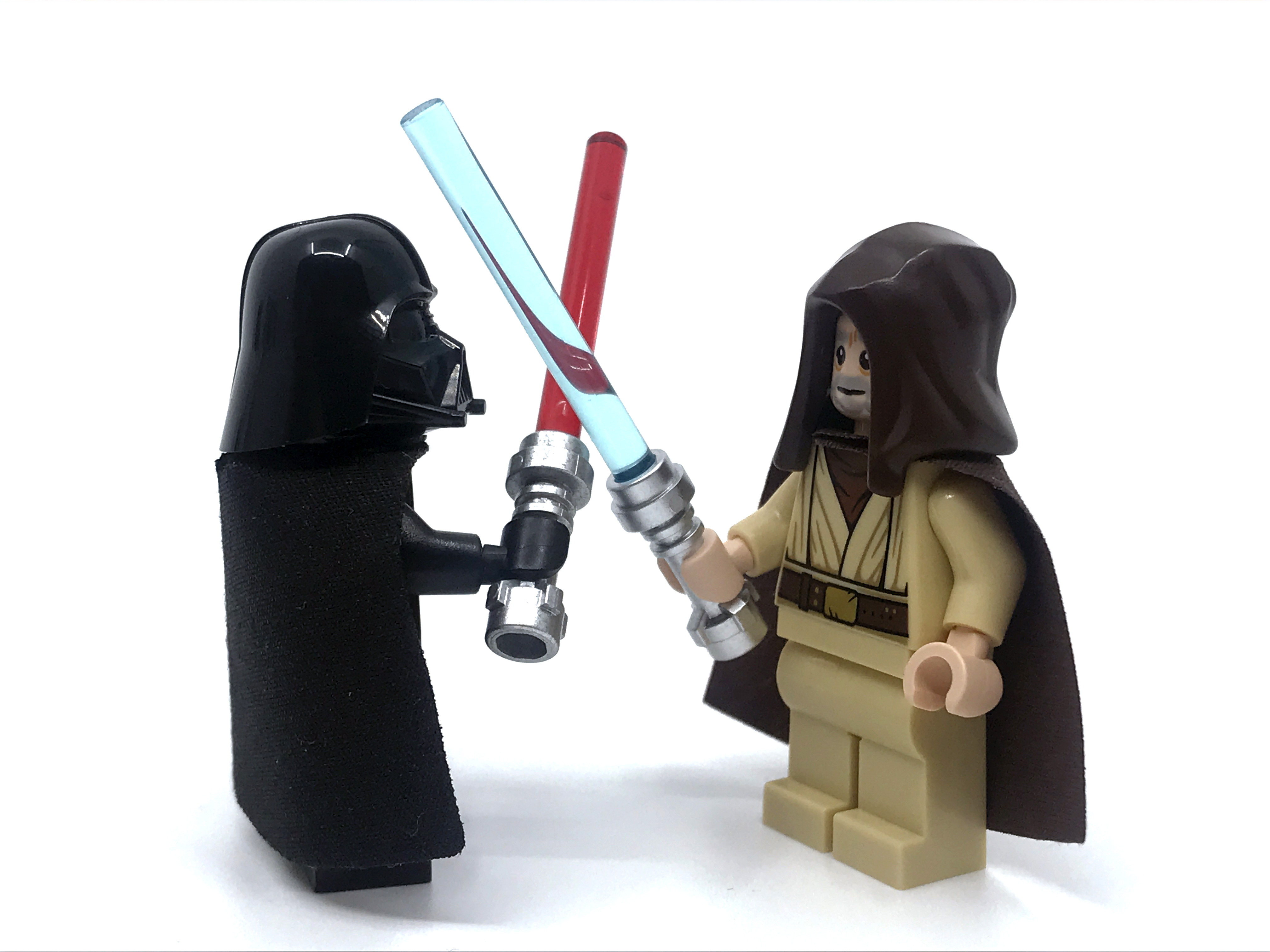 영화에선 촬영 당시 기네스 경의 나이, 양손으로 들어야하는 광선검의 설정, 내구도가 약한 소품을 사용하는 등의 복합적인 문제 때문인지, 저 당시의 라이트세이버 액션이 뛰어나다고 할 수는 없었습니다.
