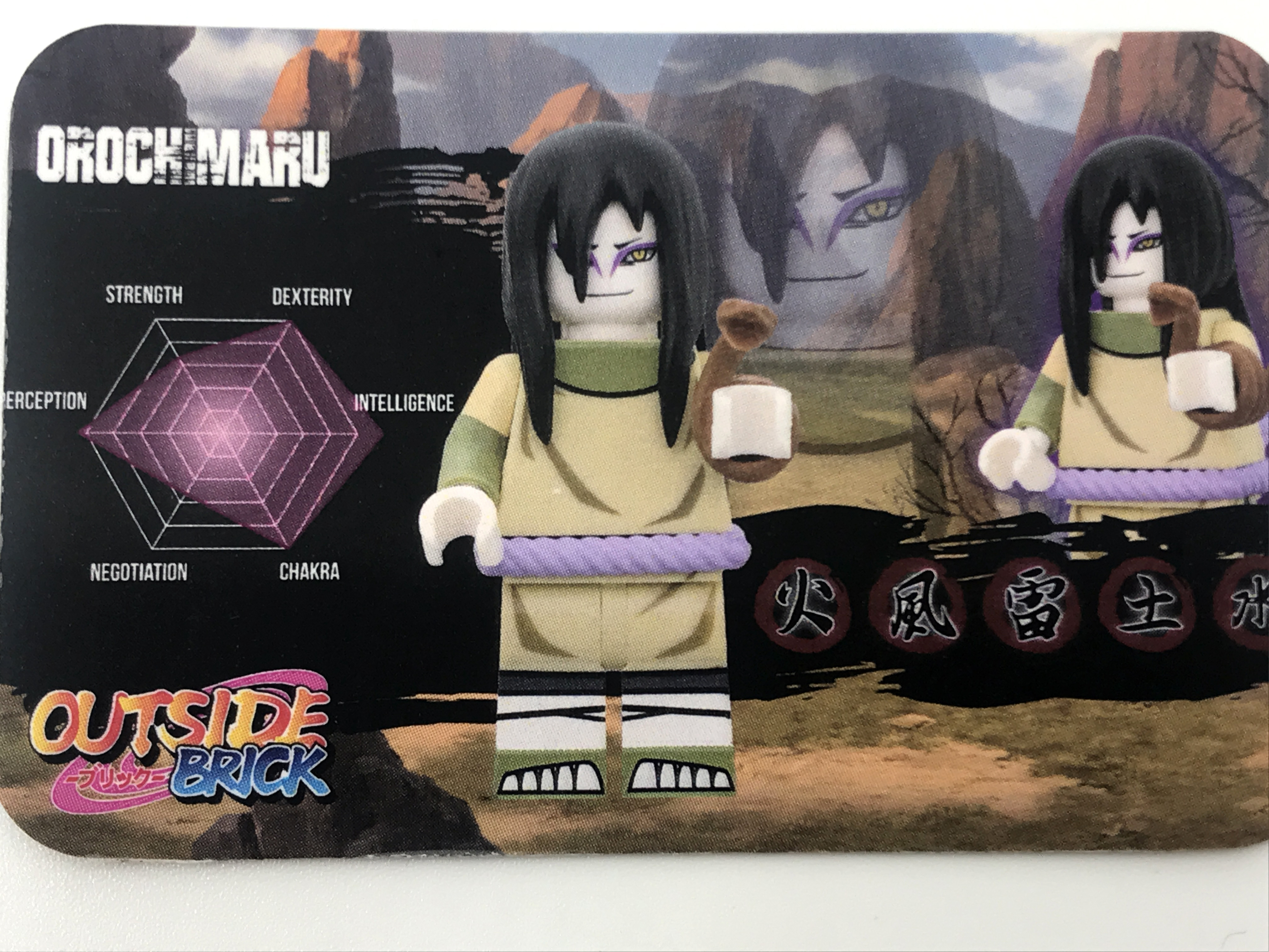 오로치마루의 레고 미니피겨화를 오랫동안 꿈꿔왔는데, 마침내 실현이 될 줄이야! 아카츠키나 우치하들에게 밀려서 커스텀 미니피겨가 없는 추세였는데, 이렇게 뛰어난 퀄리티로 나와줘서 기쁠 뿐입니다. 표정이 하나 뿐인건 좀 아쉽지만, 이 표정 하나로 먹고 살 수 있는 캐릭터라 만족합니다.