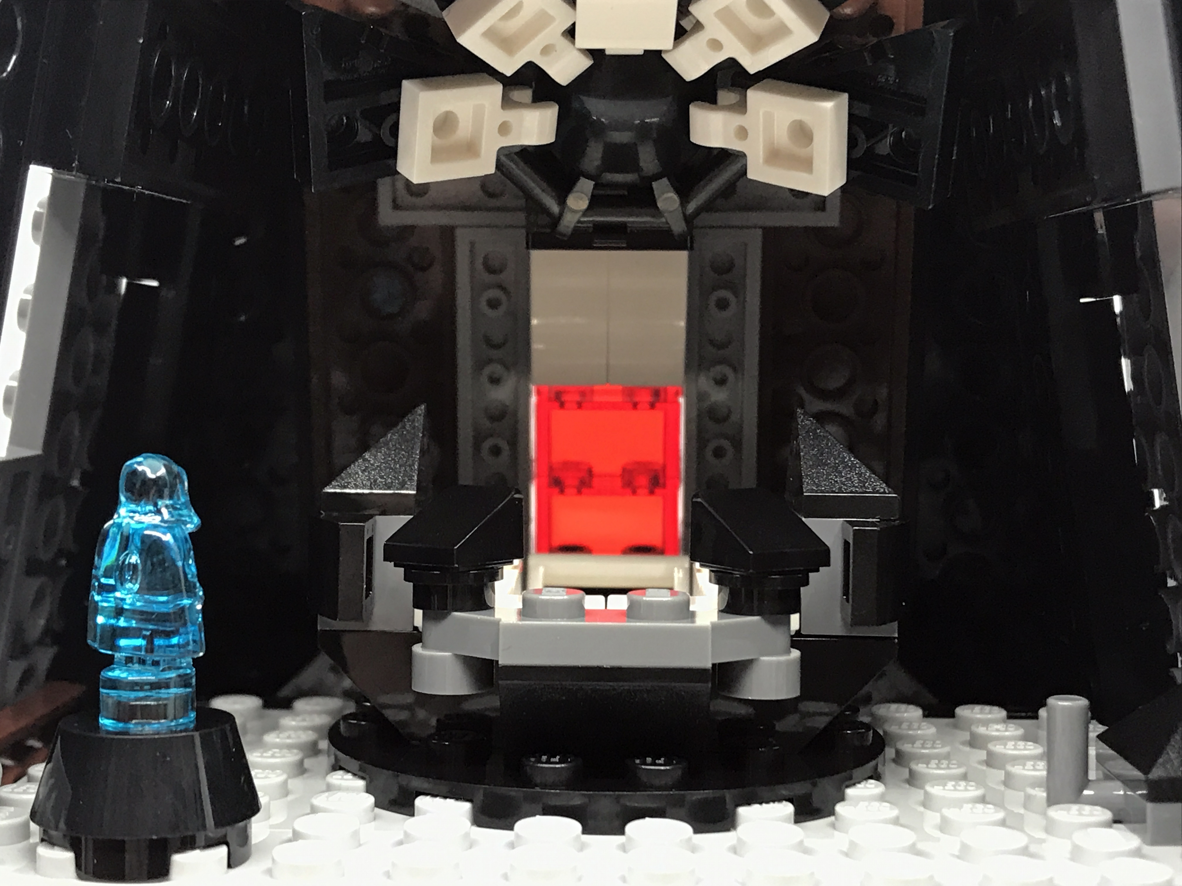 영화 <제국의 역습>에 나온 명상실처럼 천장이 올라가는 구조입니다. 평소에 헬멧을 벗을 수 없는 다스 베이더가 헬멧을 벗을 수 있는 유일한 공간이지요. 레전드에서 묘사되기론, 개인 명상실에는 스프와 같은 간단식을 먹을 수 있는 것으로 묘사되었습니다.