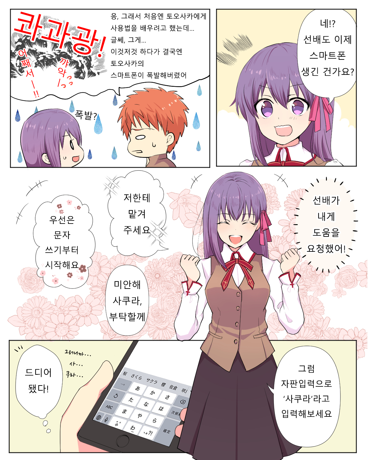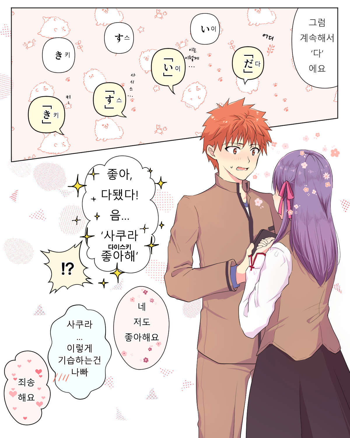 “お題で頂いたスマホの使い方を教わる士郎と頼られてうれしい桜ちゃん。 士桜ちゃんのお題ありがとうございました☺️”