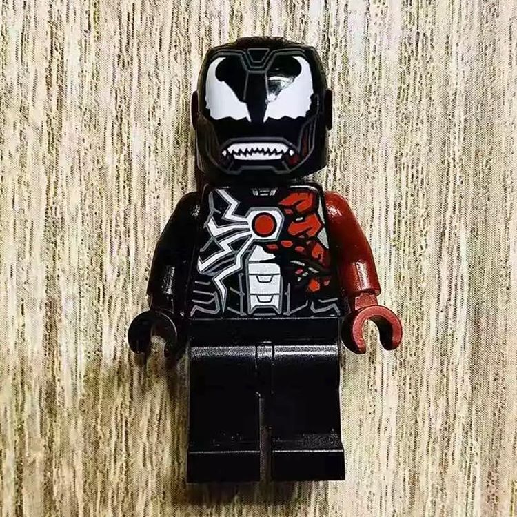 이것이 베놈화 된 아이언맨 미니피겨. 완전히 베놈화 되지 않고, 좌반신은 베놈화가 덜 된 형상입니다.