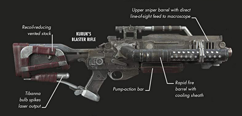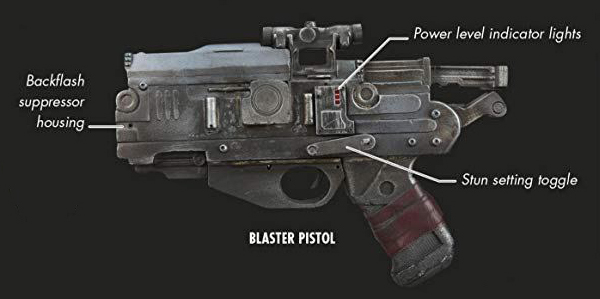 비크럴과 카도의 보조 무장인 블래스터 권총. 블래스터 권총은 좌우 대칭 구조입니다.